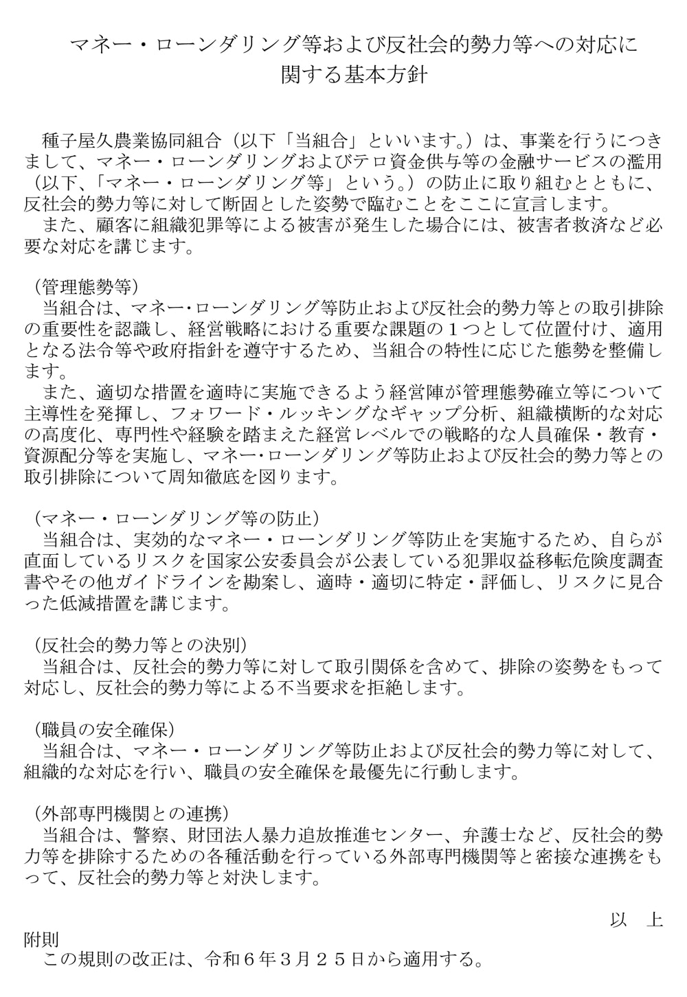 マネー・ローンダリング等および反社会的勢力等への対応に 関する基本方針