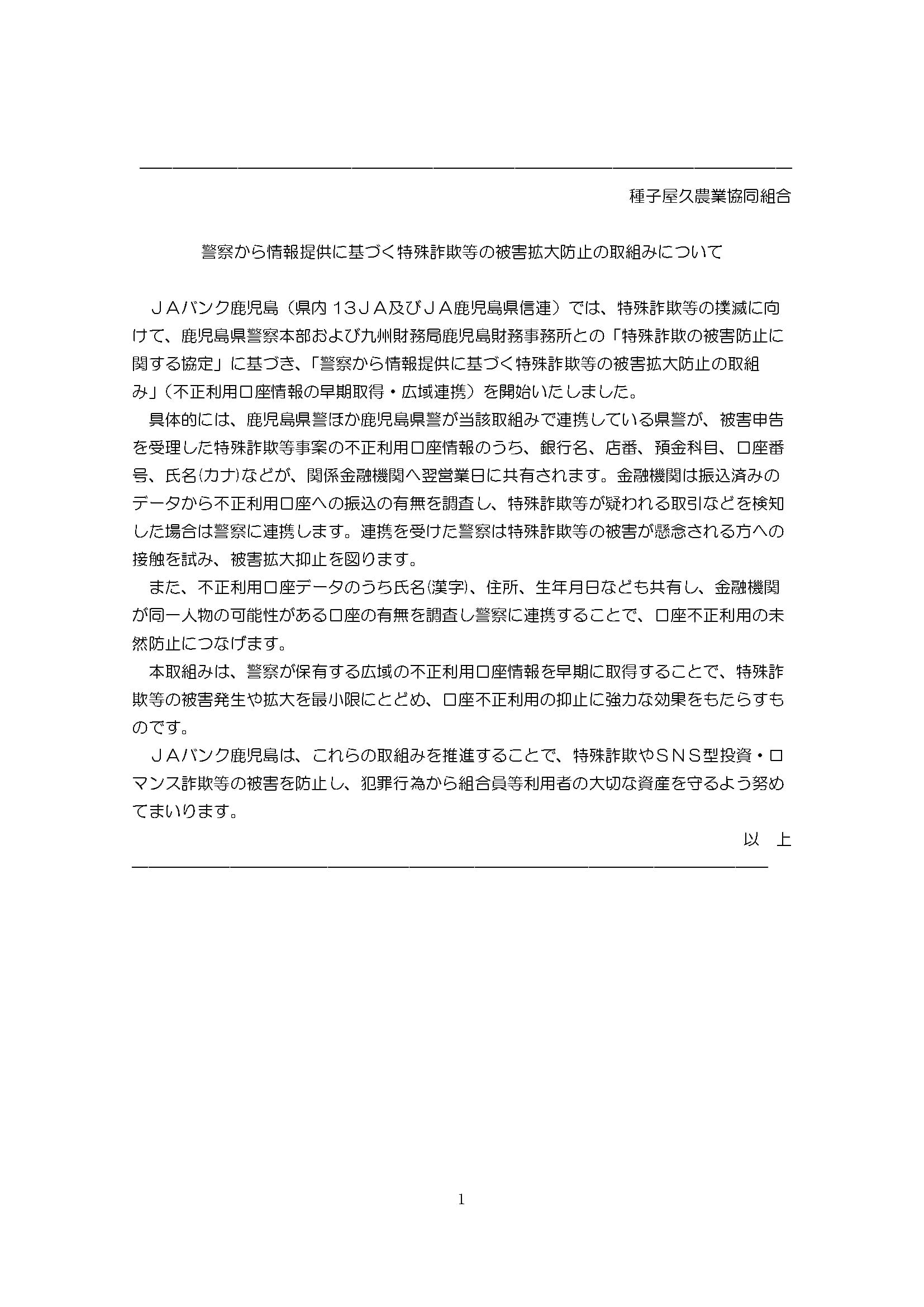 JA種子屋久金融機関コード一覧